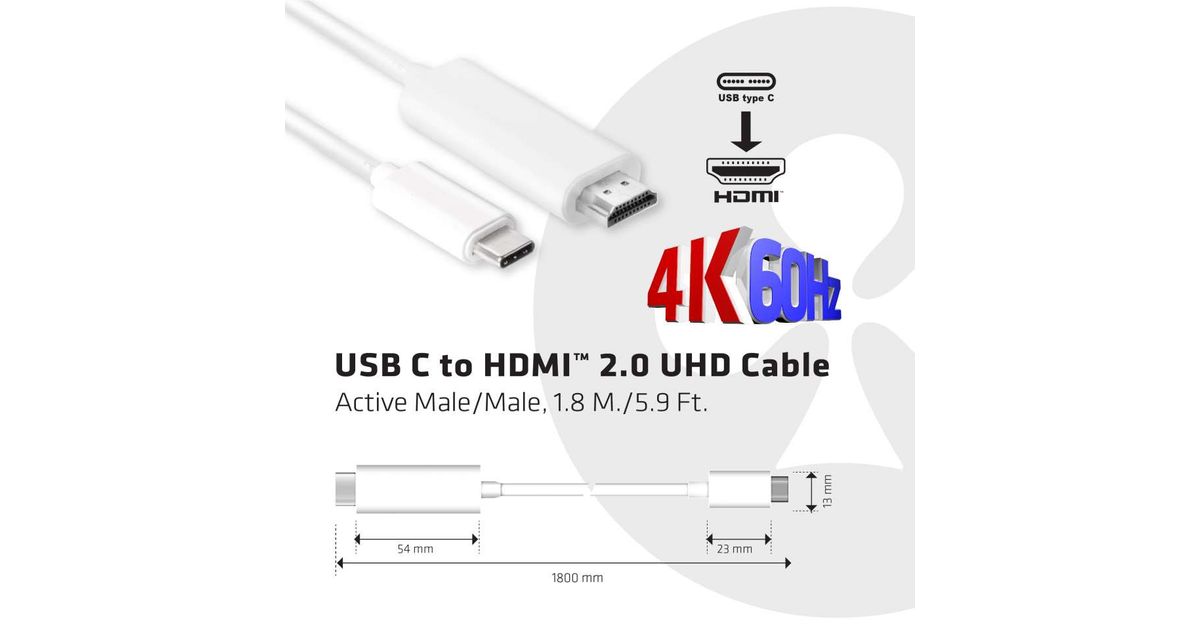 CLUB3D USB C to HDMI™ 2.0 UHD Cable Active 1.8 M./5.9 Ft., USB C, HDMI 2.0, 1,8 m, Valge