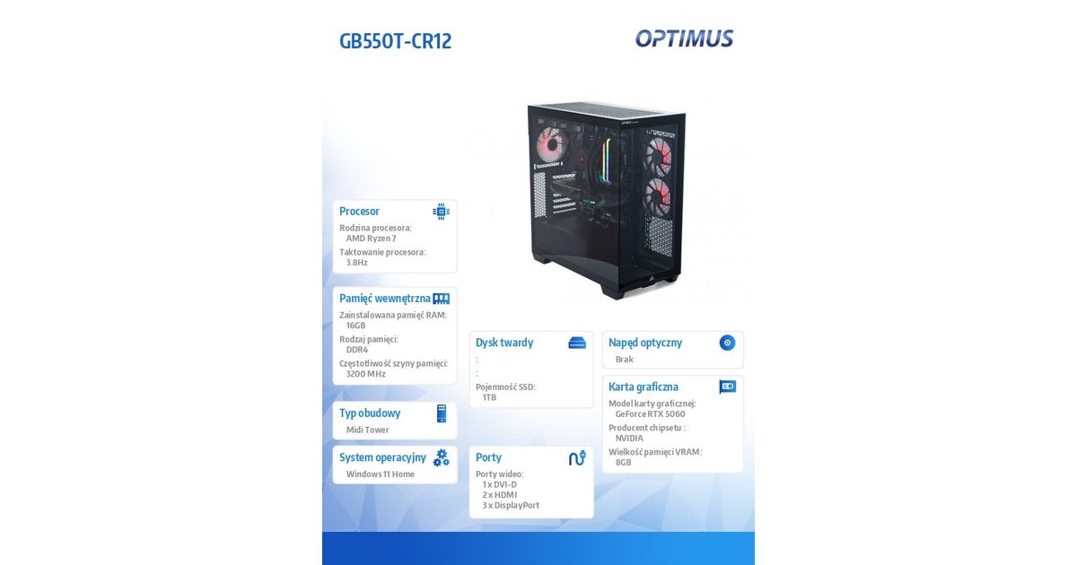Computer E-Sport GB550T-CR12 R7-5800X/16GB/1TB/RTX 5060 OC 8GB/W11