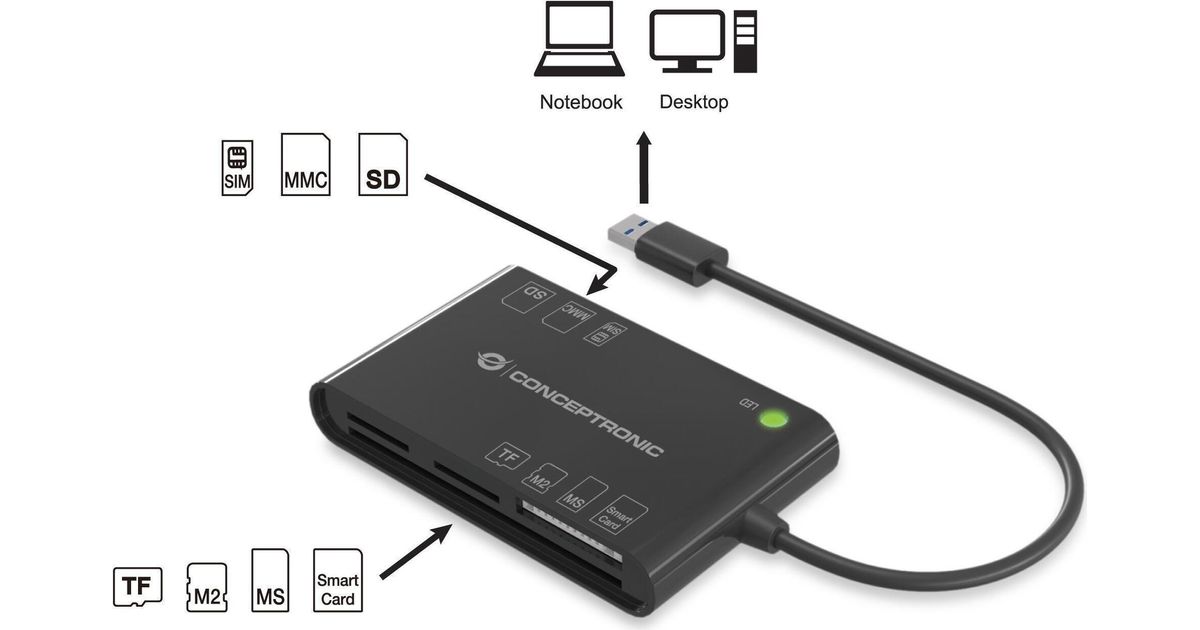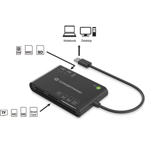 Conceptronic BIAN01B kiipkaardilugeja Hoonesisene USB 3.2 Gen 1 (3.1 Gen 1) Must
