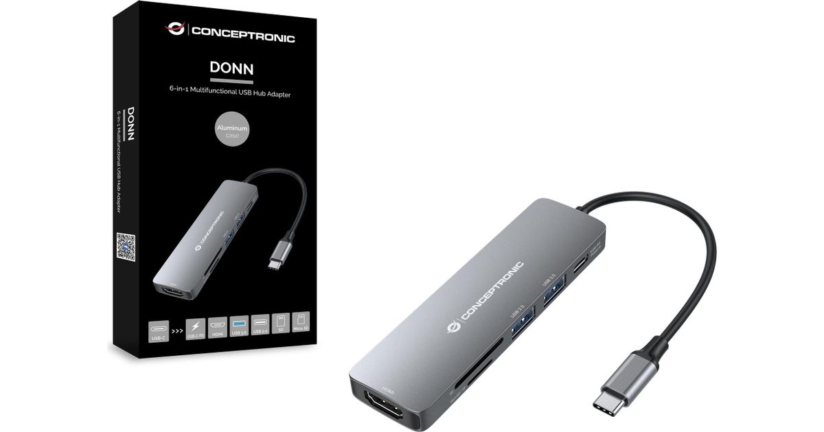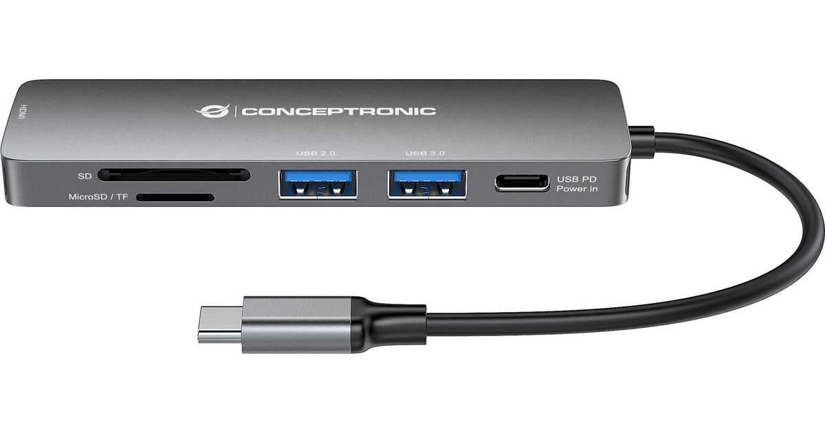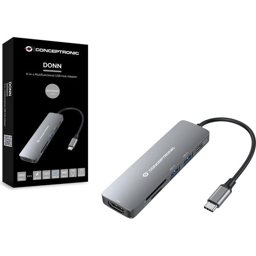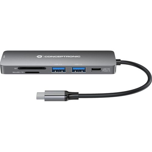 Conceptronic DONN11G, USB 3.2 Gen 1 (3.1 Gen 1) Type-C, HDMI, USB 2.0, USB 3.2 Gen 1 (3.1 Gen 1) Type-A, USB 3.2 Gen 1 (3.1 Gen 1) Type-C, MicroSD (TransFlash), SD, SDHC, SDXC, 5000 Mbit/s, 3840 x 2160 pikslit, Hall