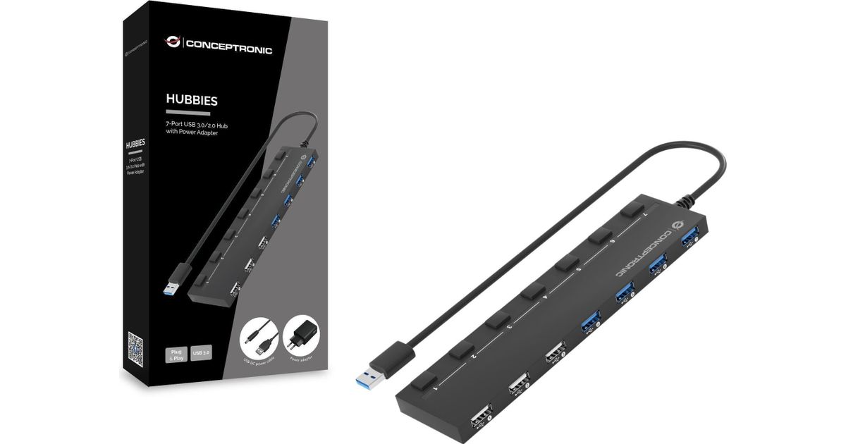 Conceptronic HUBBIES09BP jaotur USB 3.2 Gen 1 (3.1 Gen 1) Type-A 5000 Mbit/s Must