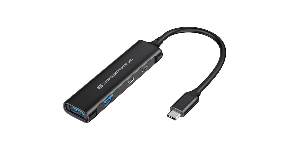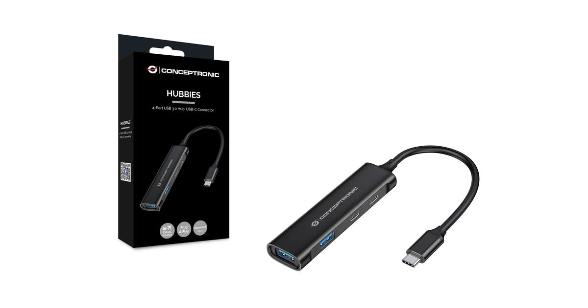Conceptronic HUBBIES12B, USB 3.2 Gen 1 (3.1 Gen 1) Type-C, 5000 Mbit/s, Must, Alumiinium, 0,15 m, USB
