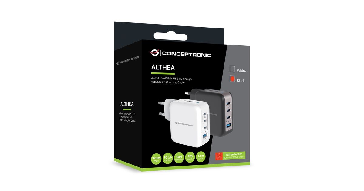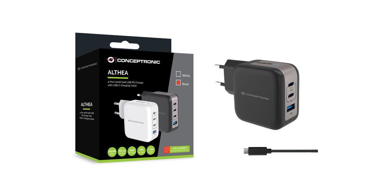 CONCEPTRONIC Ladegerät 4Port 100W,3xUSB-C,1xUSB-A 1.5m sw