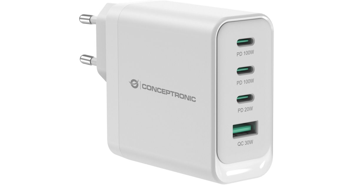 CONCEPTRONIC Ladegerät 4Port 100W,3xUSB-C,1xUSB-A weiß