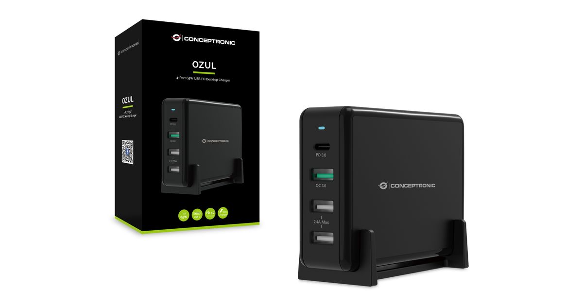 Conceptronic OZUL01B mobiilseadme laadija Must Hoonesisene