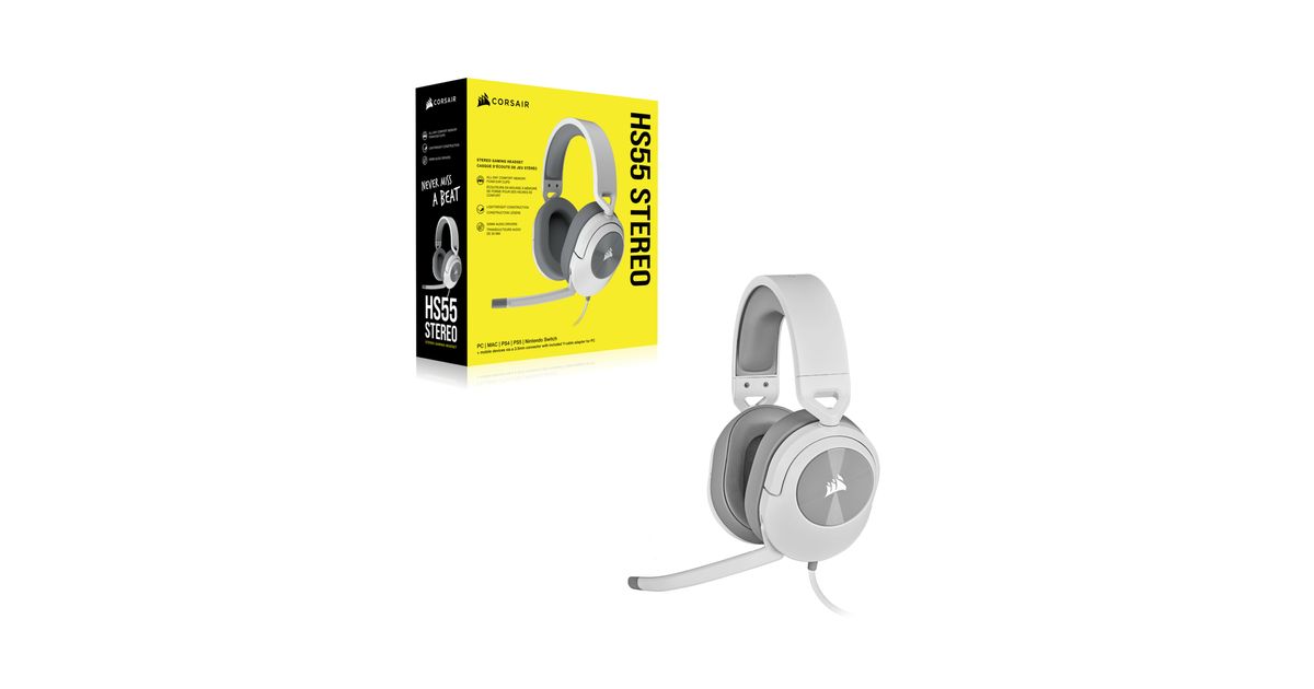 Corsair HS55 STEREO, Juhtmega ühendatud, Mängimine, 20 - 20000 Hz, 284 g, Kõrvaklapp, Valge