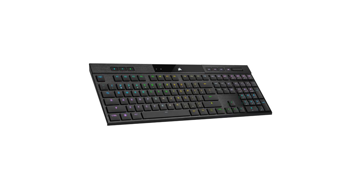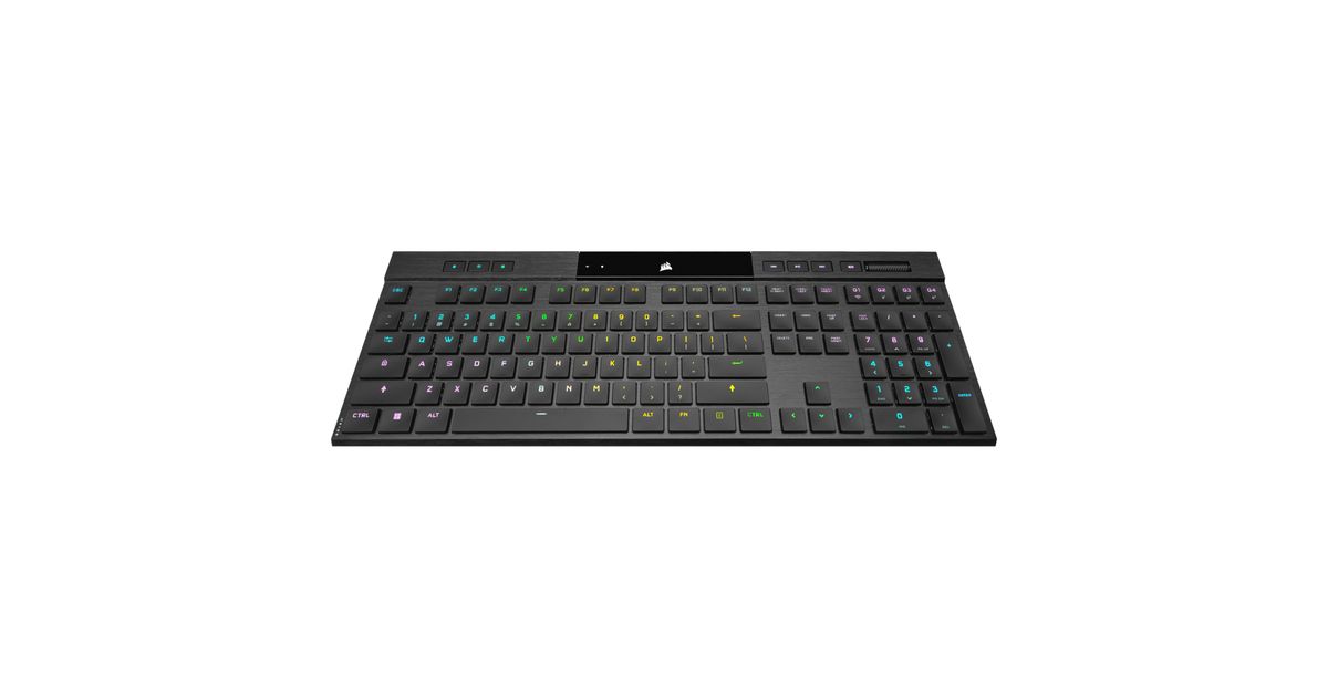 Corsair K100 RGB AIR, Täissuuruses (100%), USB + RF Wireless + Bluetooth, Mehaaniline klahvlüliti, QWERTY, RGB LED, Must