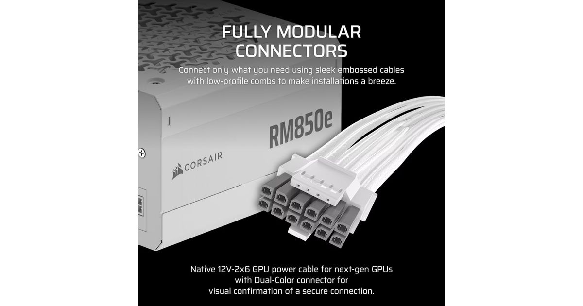 Corsair RMe White Series RM850e White 850 Watt ATX 3.1 Cybenetics GOLD Certified Fully Modular Power Supply