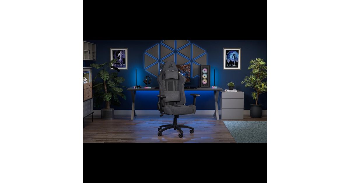 Corsair TC100, Polsterdatud iste, Polsterdatud seljatugi, Hall, Hall, Kangas, Kangas