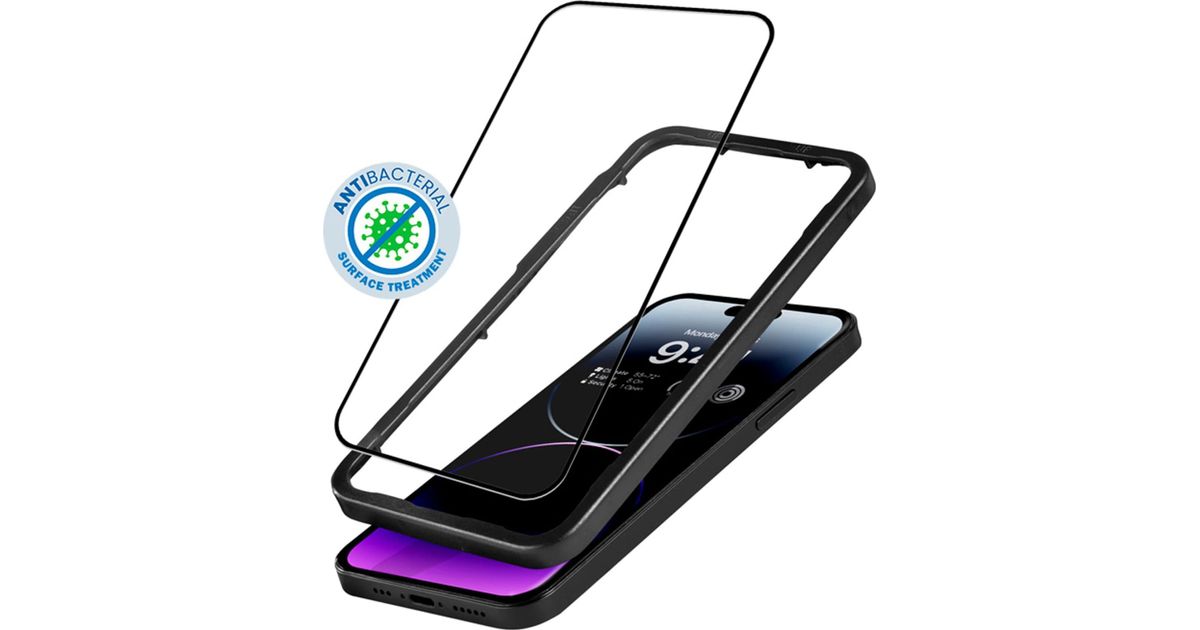 Crong Crong antibakteriaalne 3D soomusklaas – 9H täisekraaniga karastatud klaas iPhone 14 Pro Max + paigaldusraam