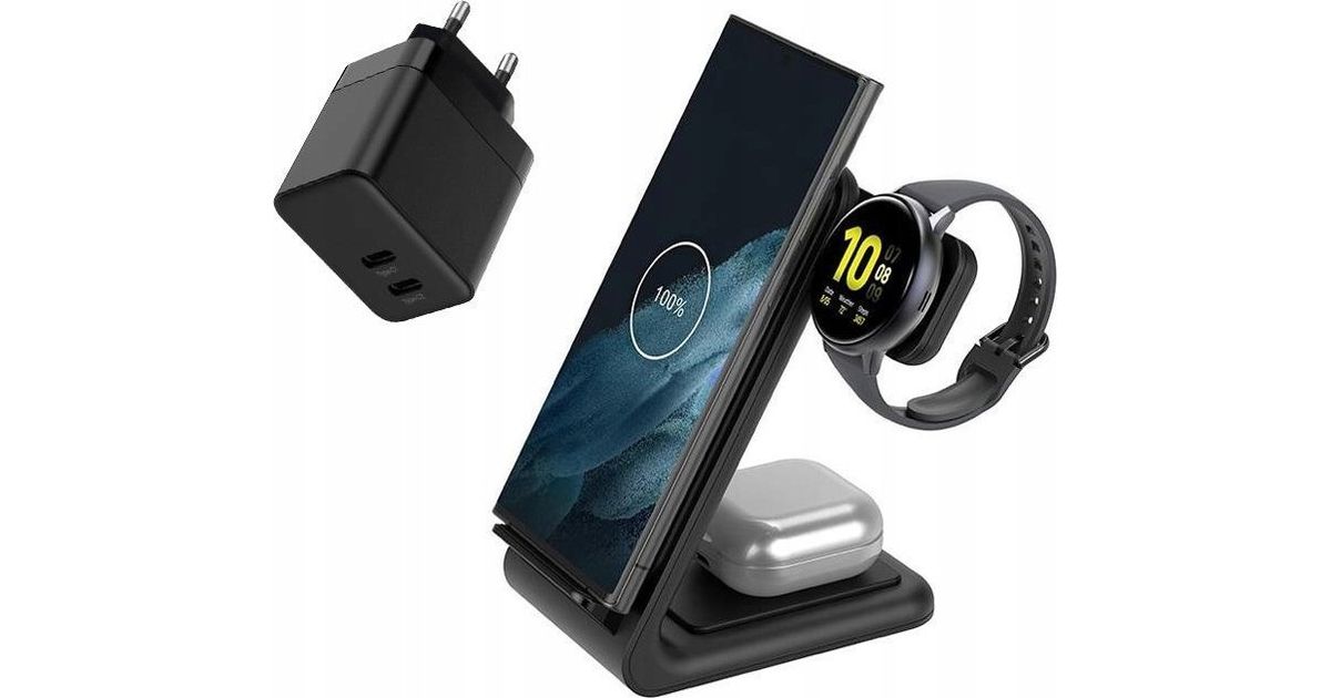 Crong Crong laadija – GaN PD 35W laadijakomplekt pluss PowerSpot Pivot Stand 3in1 juhtmevaba laadija iPhone'ile, Samsungile ja Androidile