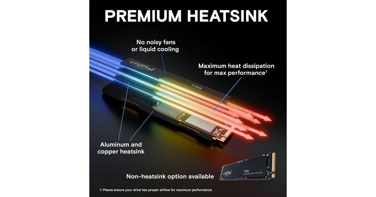 Crucial T705 with heatsink 2TB PCIe Gen5 NVMe M.2 SSD