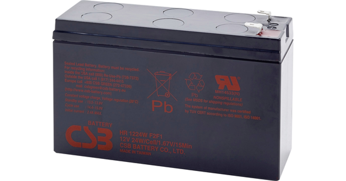 Csb Battery Hr 1224W High-Rate Hr1224Wf2F1 Vrla 12 V 5.8 Ah Agm (W X H X D) 151 X 98 X 51 Mm 6.35 Mm Blade Terminal Maintenance-Free, Low Self-Discharge Levels