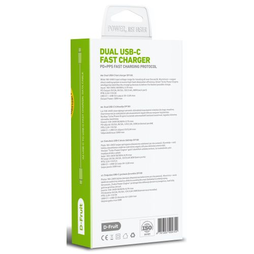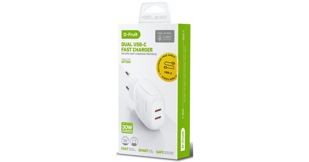 D-Fruit laadija 2xUSB-C + USB-C kaabel 1m (DF100)
