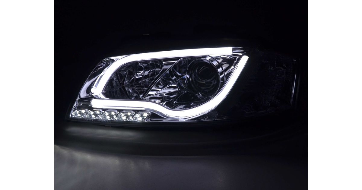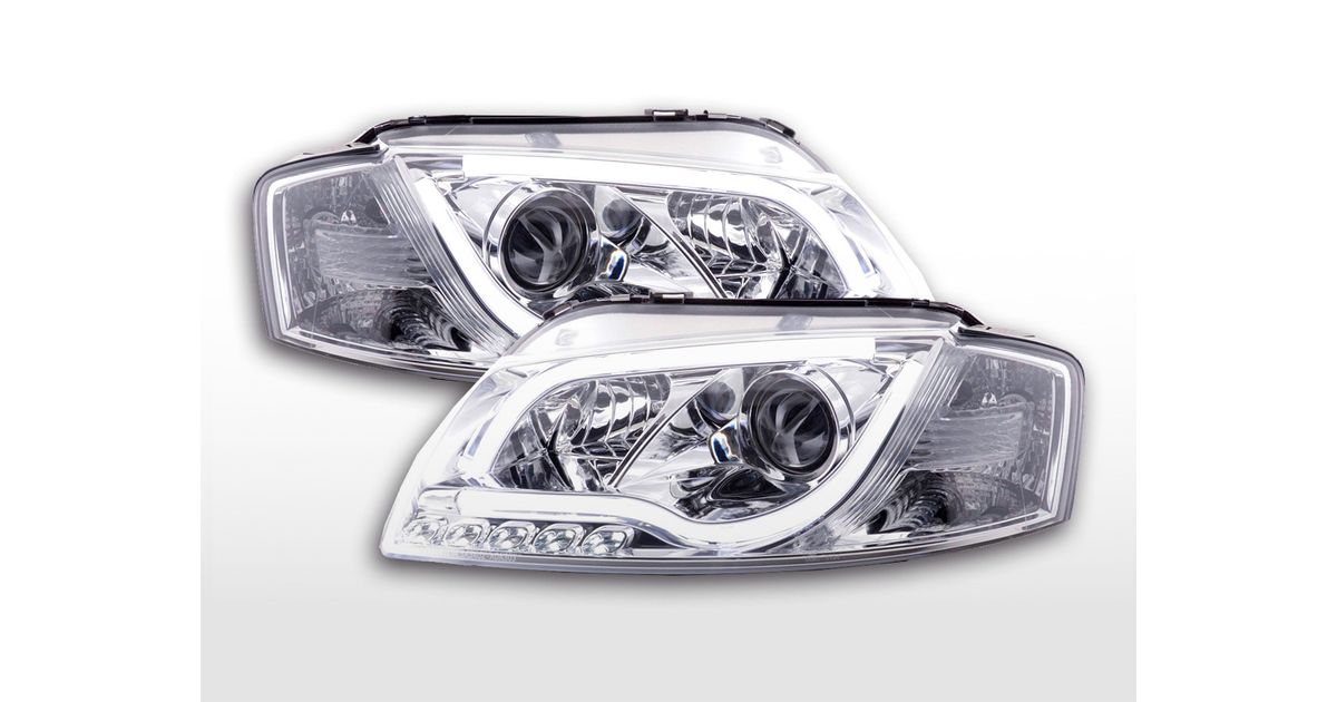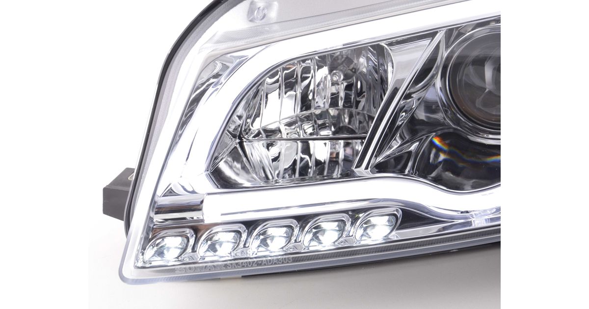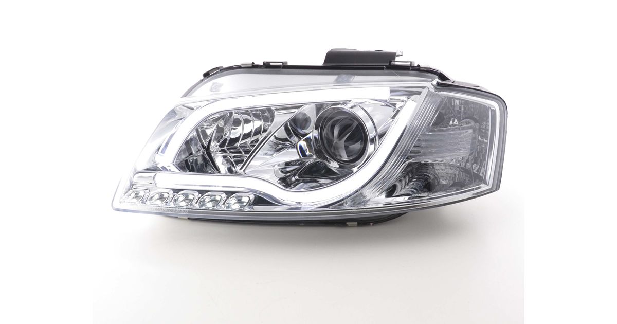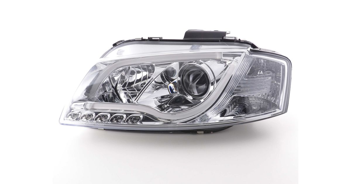 for Audi A3 (8P / 8PA) for year of construction: 2003 to 2008 with E mark (registration free) with electr. Headlight range adjustment without servomotor Color: chrome Daylight headlights with LED daytime running lights with R87 approval for daytime running lights 1 set consisting of 2 lights best
