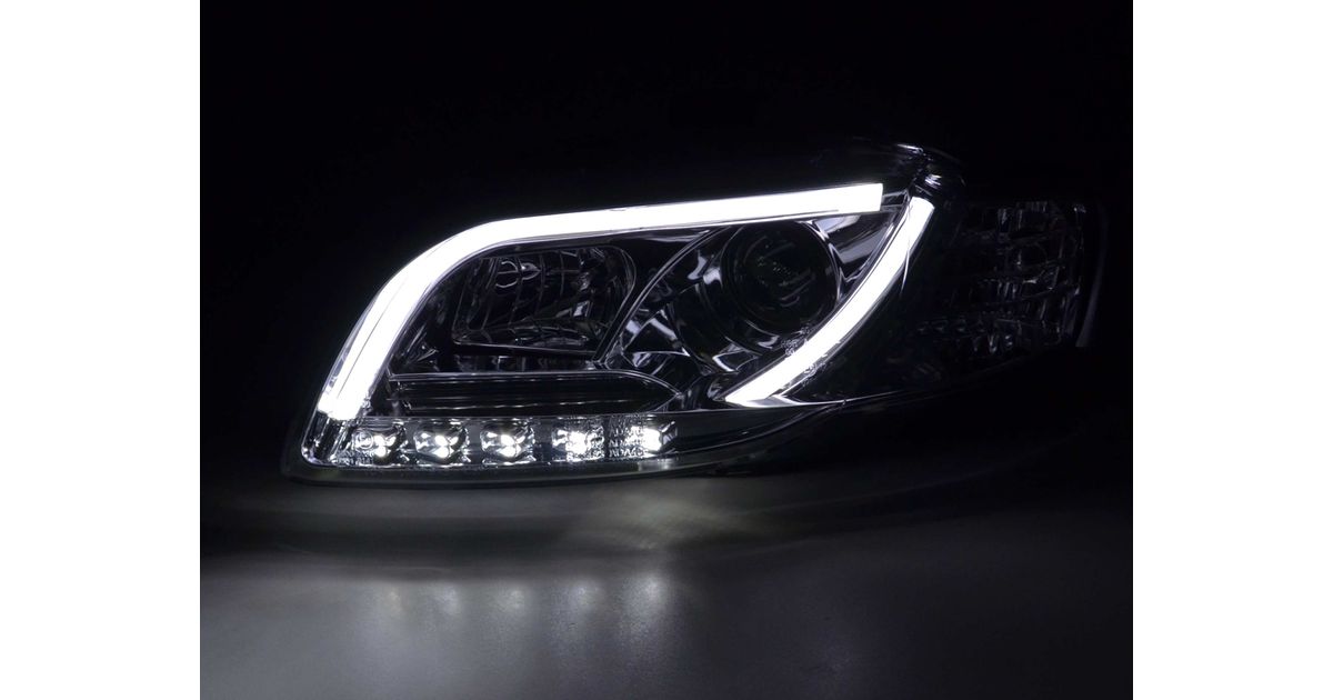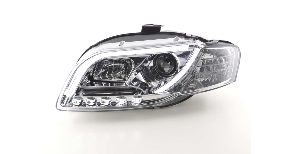for Audi A4 (B7 / 8E) for year of construction: 2004 to 2008 Color: chrome with E mark (registration free) with electr. Headlight range adjustment including servomotor Daylight headlights with LED daytime running lights with R87 approval for daytime running lights 1 set consisting of 2 best lights