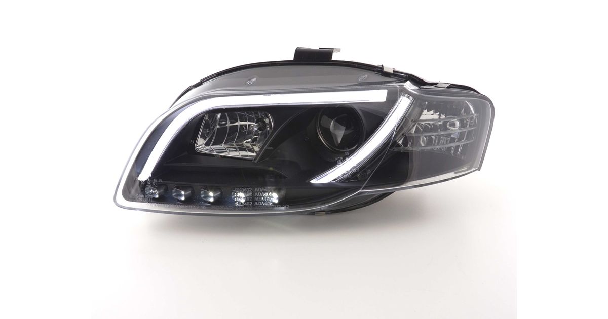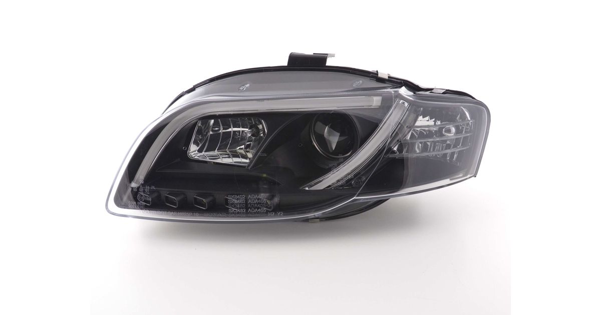 for Audi A4 (B7 / 8E) for year of construction: 2005 to 2007 Color: Black with E mark (registration free) with electr. Headlight range adjustment including actuator daylight headlights with LED daytime running lights with R87 approval for daytime running lights 1 set consisting of 2 lights Bulbs: H1 & H7