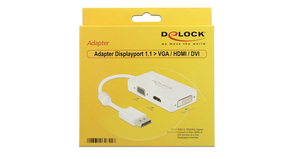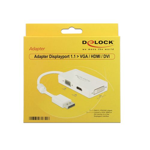 DeLOCK 0.16m DisplayPort/VGA+HDMI+DVI-D 0,16 m VGA (D-Sub)+ HDMI + DVI Valge