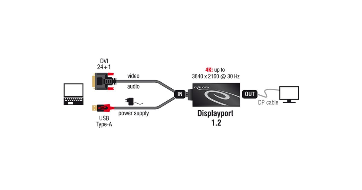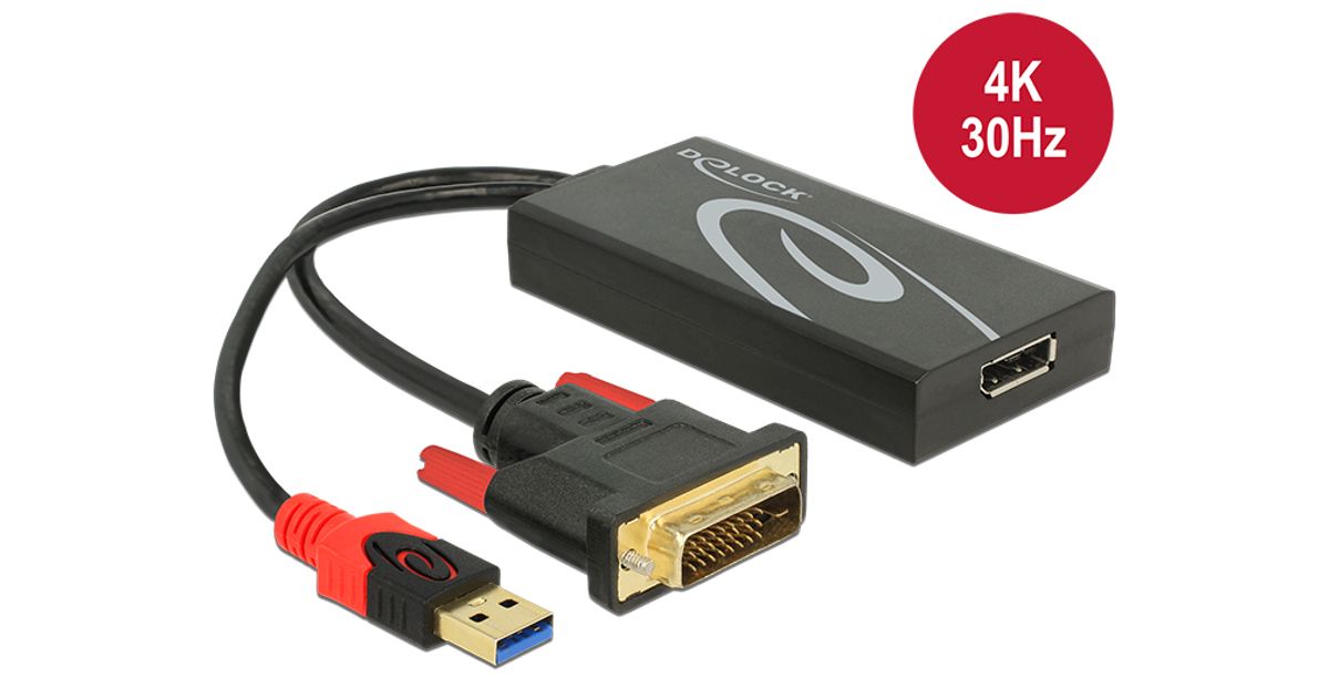 DeLOCK 0.3m, DVI 24+1 + USB-A/Displayport 20p, 0,3 m, DVI-D + USB, HDMI, Meessoost, Naissoost, 3840 x 2160 pikslit