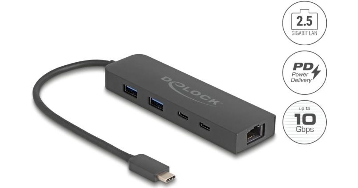 DeLOCK 10 Gbps USB Hub with 2.5 Gigabit LAN port and PD 85 Watt