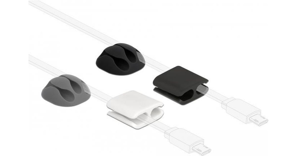 DeLOCK 18394 juhtmete organisaator Laud/sein Kaablihoidja Must, Hall, Valge 4 tk