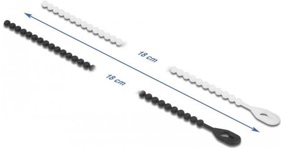 DeLOCK 19507, Nuppkinnitusega juhtmeside, Polüamiid, Must, Valge, 4,9 cm, -40 - 85 °C, 18 cm