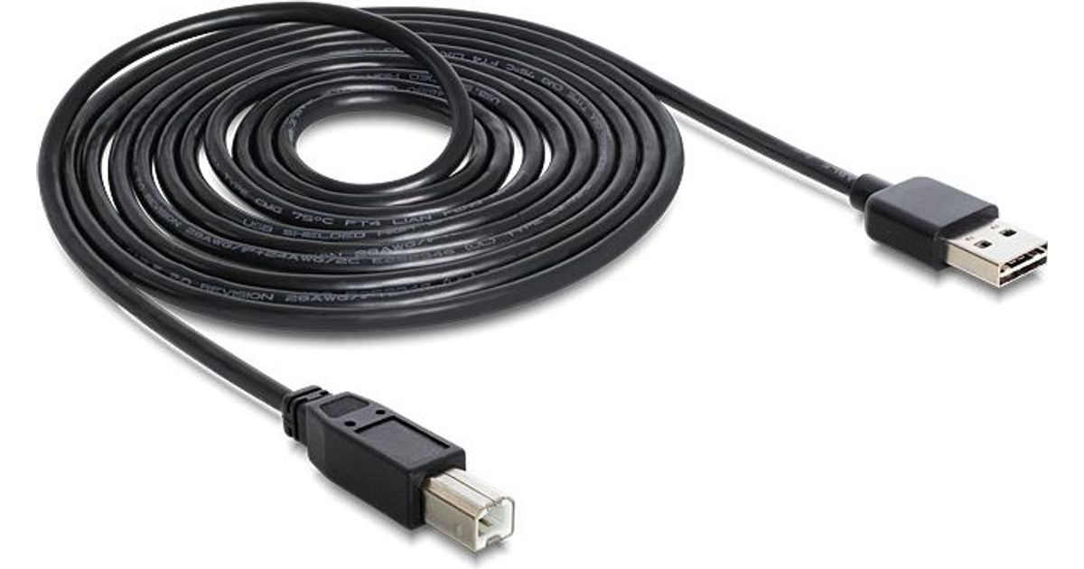 DeLOCK 3m USB 2.0 A - B m/m, 3 m, USB A, USB B, USB 2.0, Meessoost/meessoost, Must