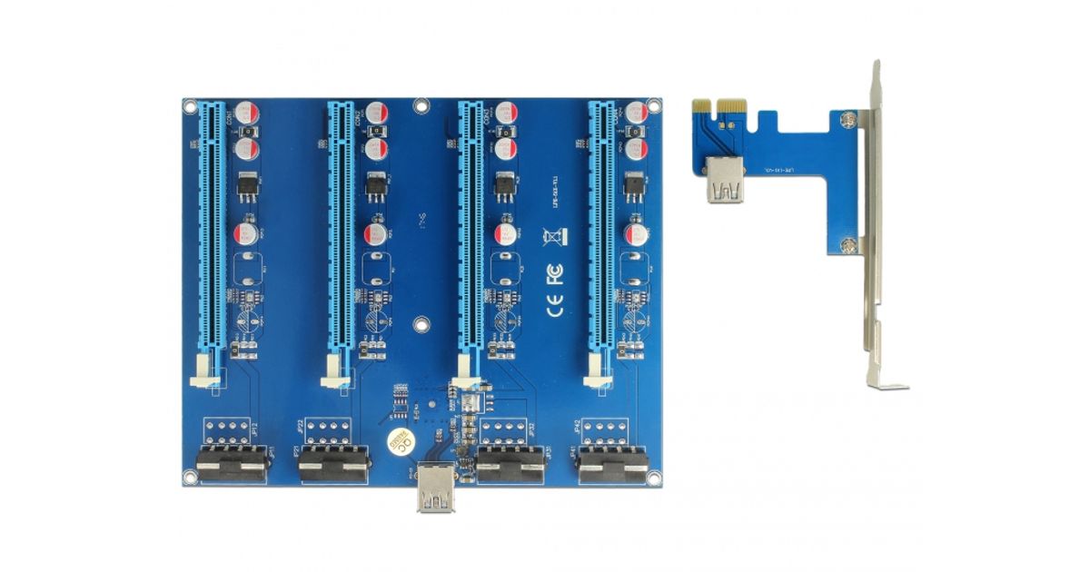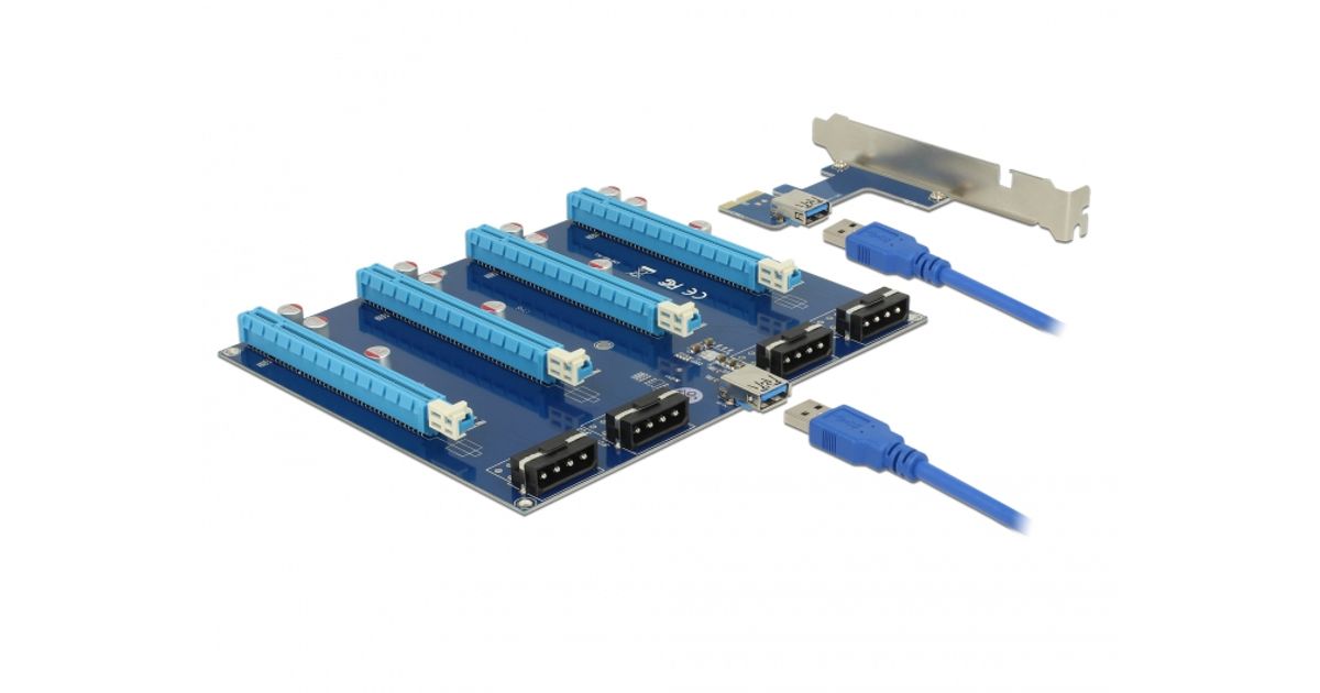 Delocki PCI Express riser-kaarti saab ühendada emaplaadi mis tahes PCI Express x1 pessa. PCI Express'i pistikuplaadi saab paigaldada korpuses erinevasse asendisse. See võimaldab kuni nelja graafikakaardi kasutamist emaplaadi igas PCIe-pesas, isegi kui graafikakaardid on laiemad kui üks pesa.
