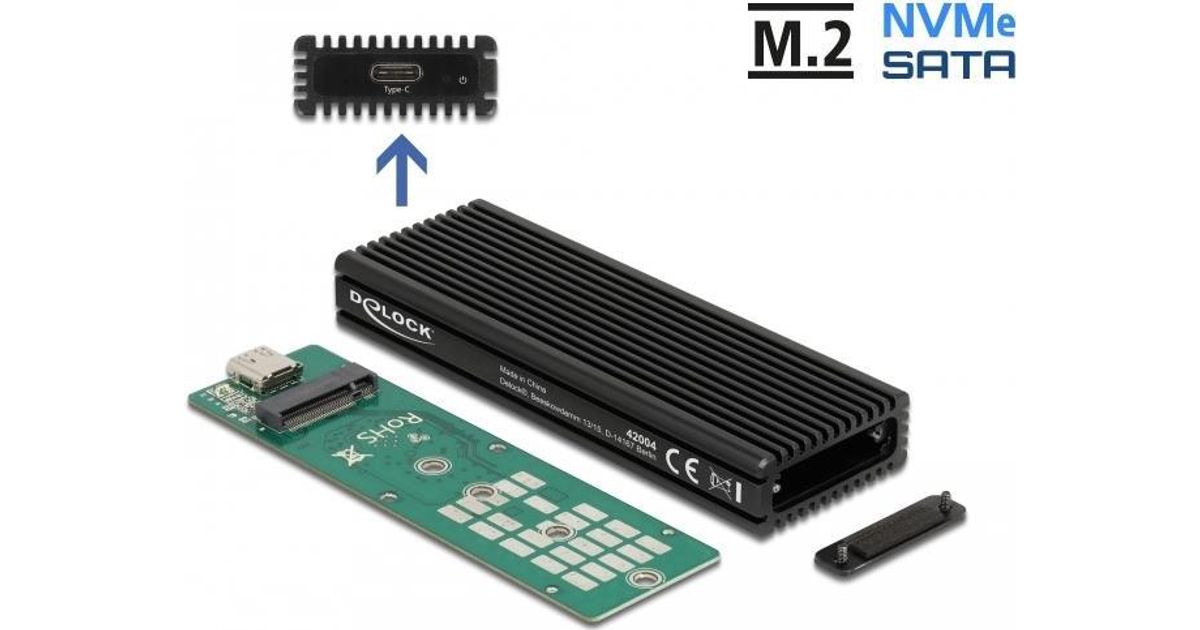 DeLOCK 42004, Kõvaketta korpus, M.2, PCI Express, Jada ATA, 10 Gbit/s, USB ühilduvus, Must