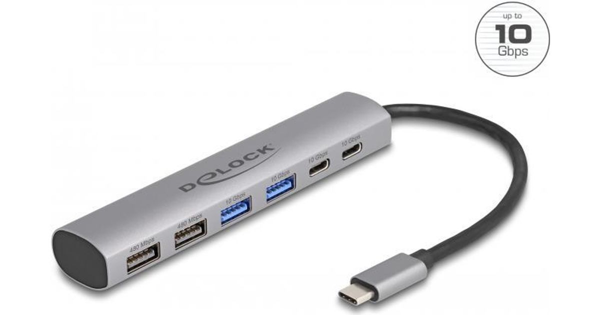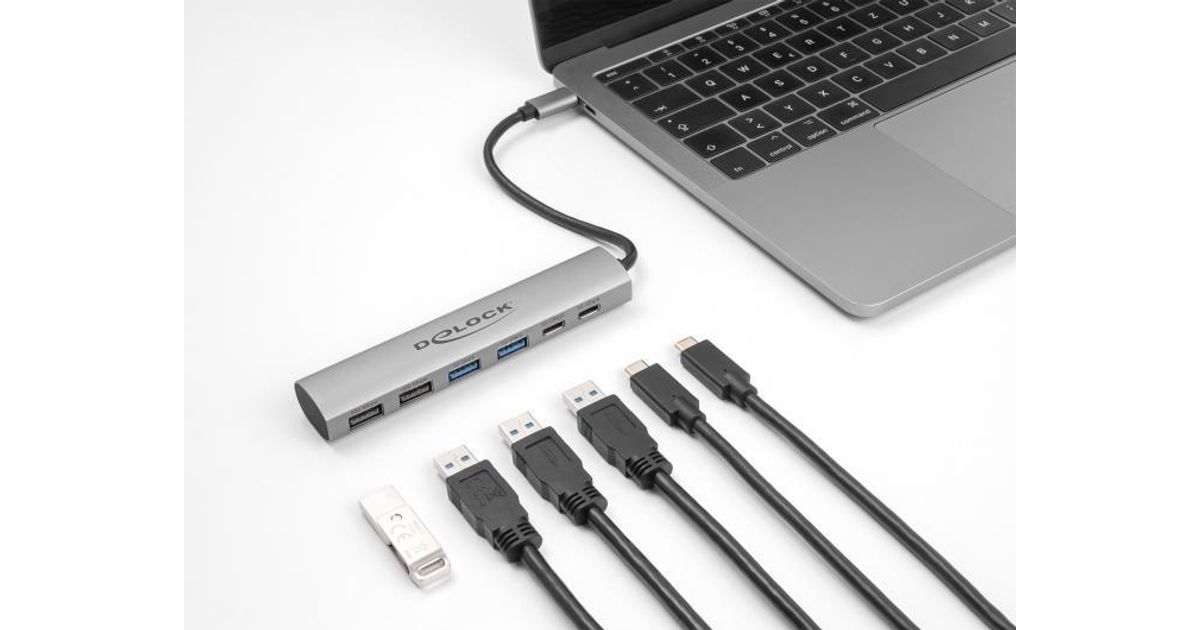 Delock 6 Port USB Hub mit 4 x USB Typ-A Buchse und 2 x USB Type-C™ Buchse (64232)