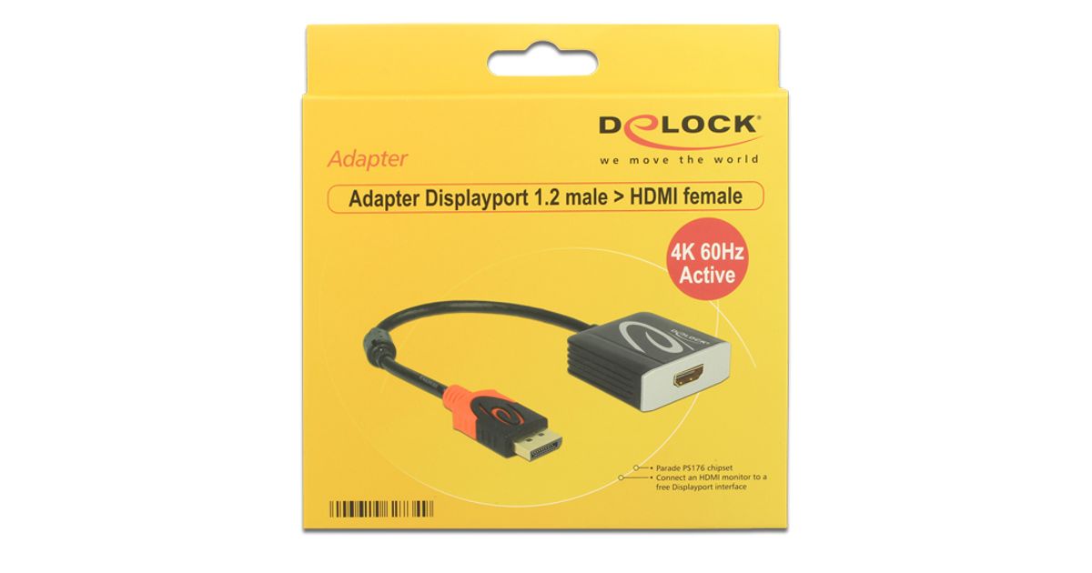 See Delocki adapter võimaldab HDMI-monitori ühendamist süsteemi vaba DisplayPort-liidese kaudu. Adapter toetab resolutsiooni kuni 4K Ultra HD 60 Hz juures ja on tagasiulatuvalt ühilduv Full-HD 1080p-ga. Adapter pakub aktiivset konverteerimist, seega sobib see ka graafikakaartidele, mis ei ole võimelised DP++ signaale väljastama.