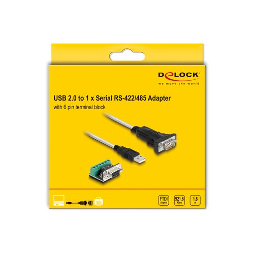 DeLOCK 63465 järjestikkaabel Must, Läbipaistev 1,8 m USB tüüp A DB-9