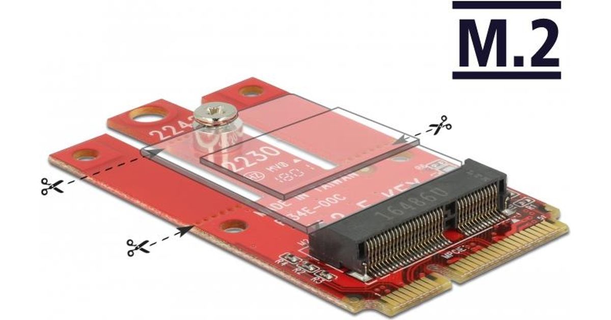 DeLOCK 63909, Mini PCI Express, M.2, Täiskõrgus, Punane, Windows 10,Windows 7,Windows 8,Windows 8.1, 30 mm