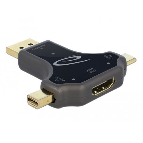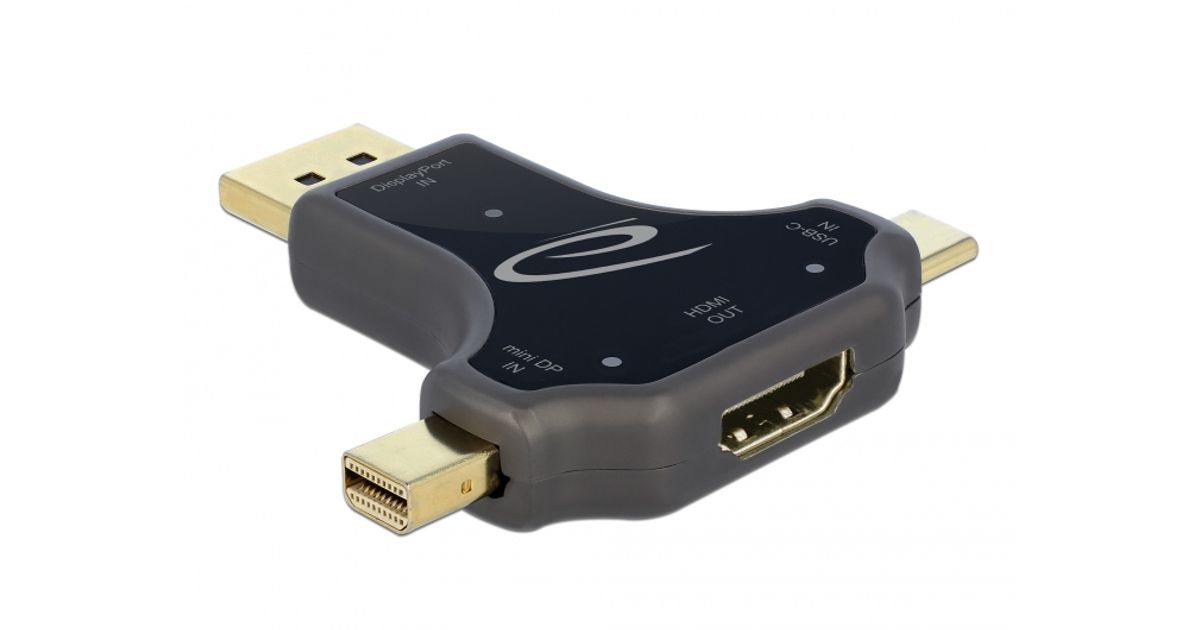 Seda Delocki monitoriadapterit saab valikuliselt ühendada USB Type-C™, DisplayPort või mini DisplayPort liidesega, väljund toimub HDMI-pistiku kaudu.