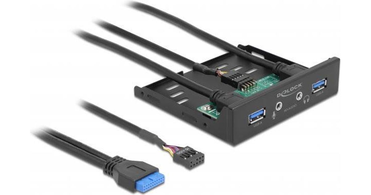 DeLOCK 64150, Esipaneel, Metall, Must, 2 x USB 3.2 Gen 1, 2 x HD-Audio, 1 tk