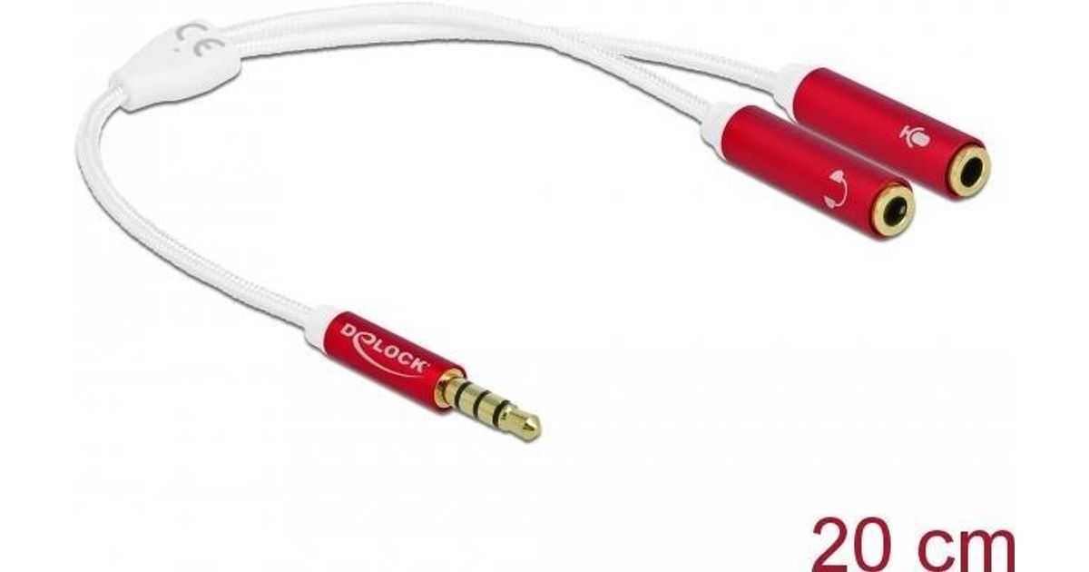 DeLOCK 66519, 3.5mm, Meessoost, 2 x 3.5mm, Naissoost, 0,2 m, Punane, Valge