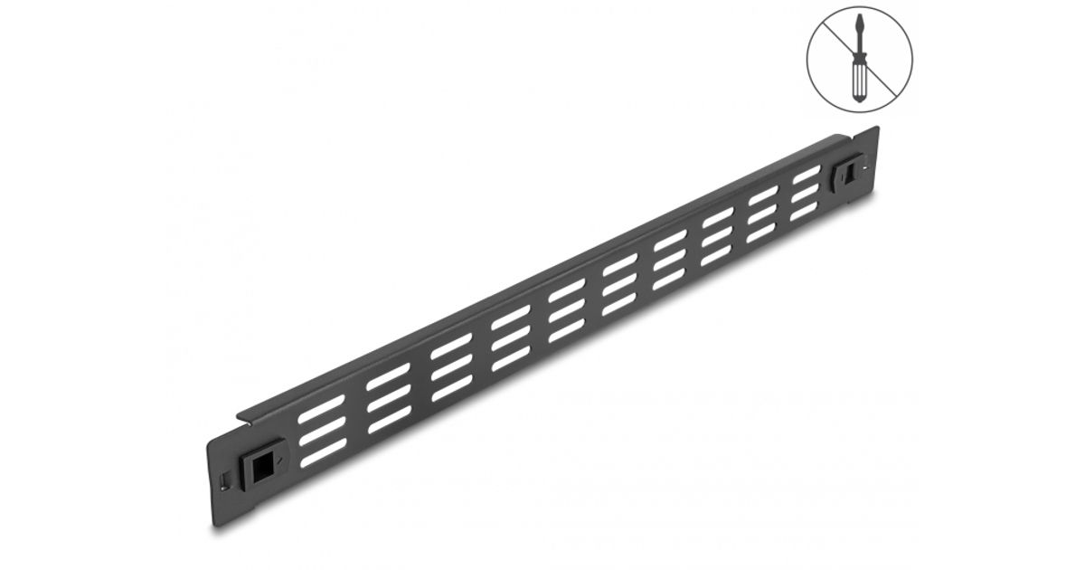 DeLOCK 66985, Ventileeritud tühi paneel, Must, Metall, 1U, 44 mm, 48,2 cm