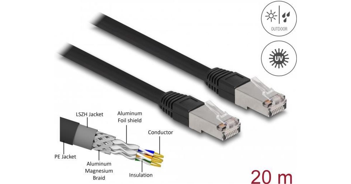 DeLOCK 80132 võrgukaabel Must 20 m Cat6a S/FTP (S-STP)