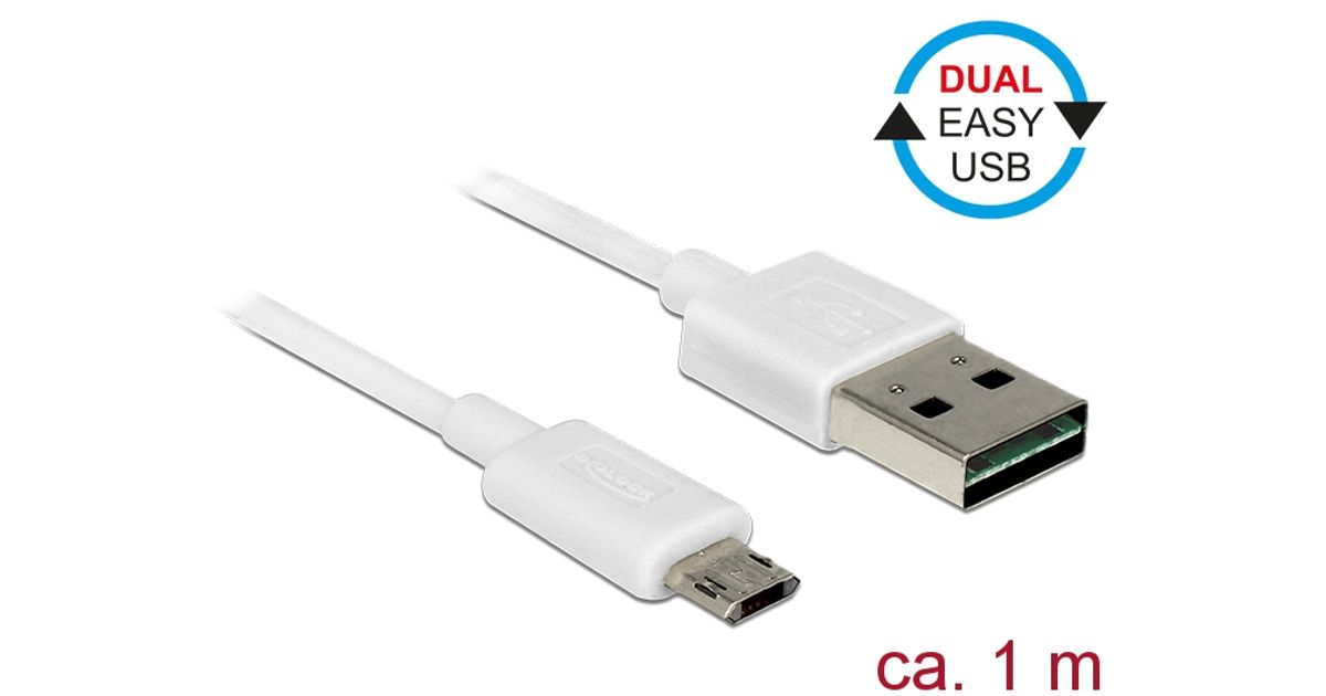DeLOCK 84807, 1 m, USB A, Micro-USB B, USB 2.0, 480 Mbit/s, Valge
