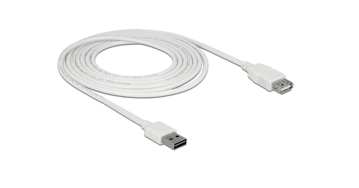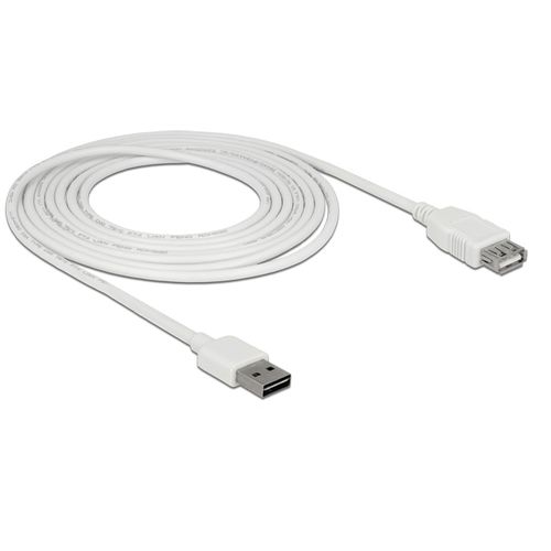 DeLOCK 85201, 3 m, USB A, USB A, USB 2.0, Meessoost/naissoost, Valge