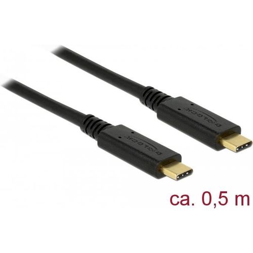 DeLOCK 85529, 0,5 m, USB C, USB C, USB 3.2 Gen 2 (3.1 Gen 2), 10000 Mbit/s, Must