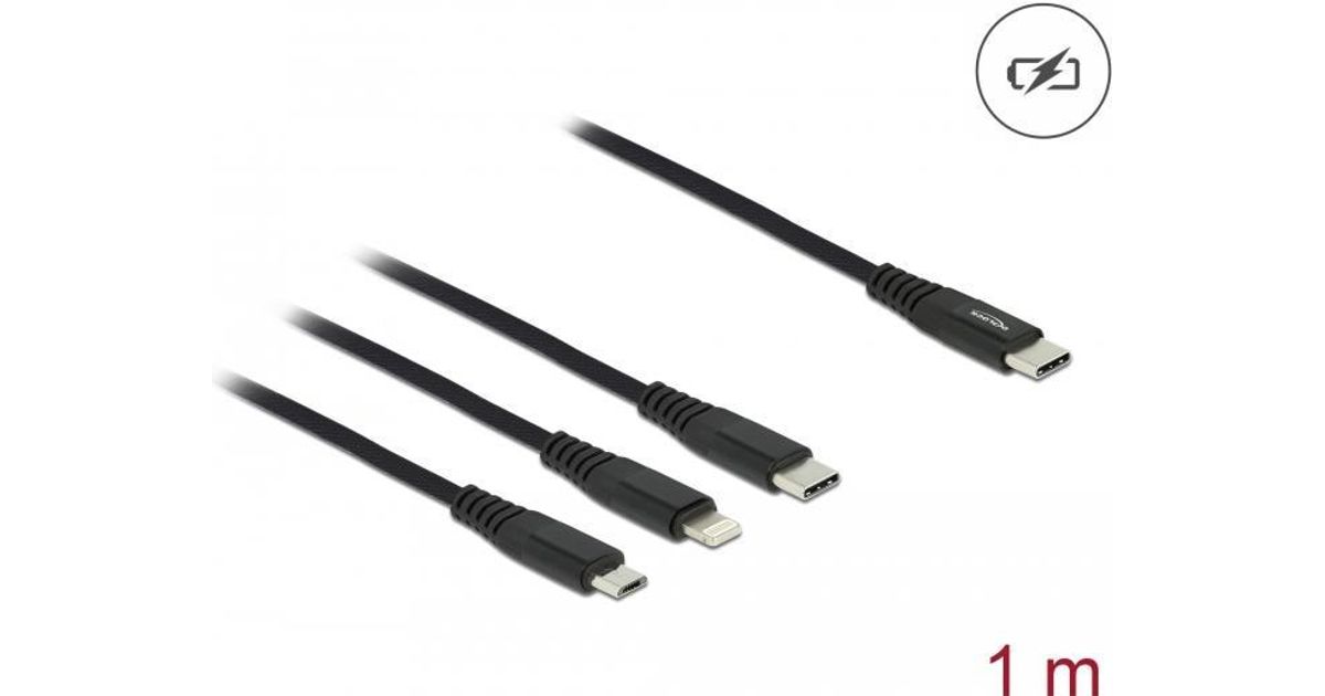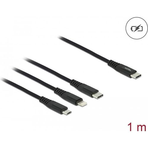 DeLOCK 87149, 1 m, USB C, USB C/micro-USB B/Lightning, USB 2.0, Must