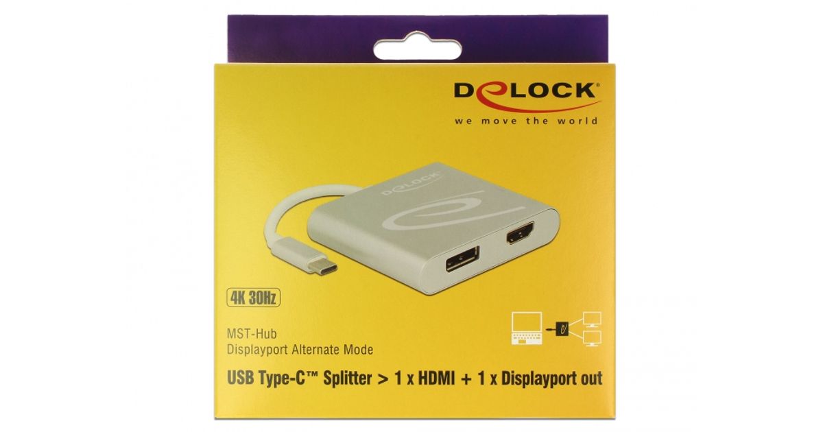 DeLOCK 87716, 0,1 m, USB tüüp-C, HDMI + DisplayPort, Meessoost, 2560 x 1440 pikslit, 2160p