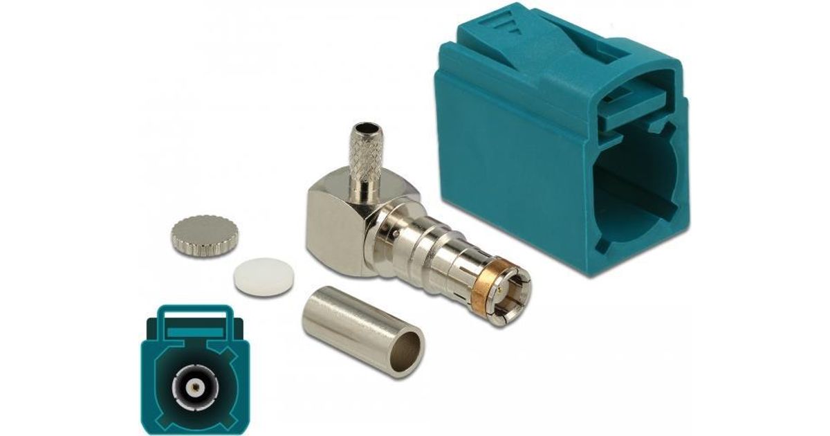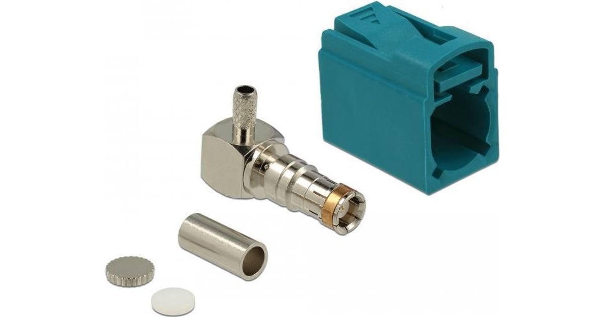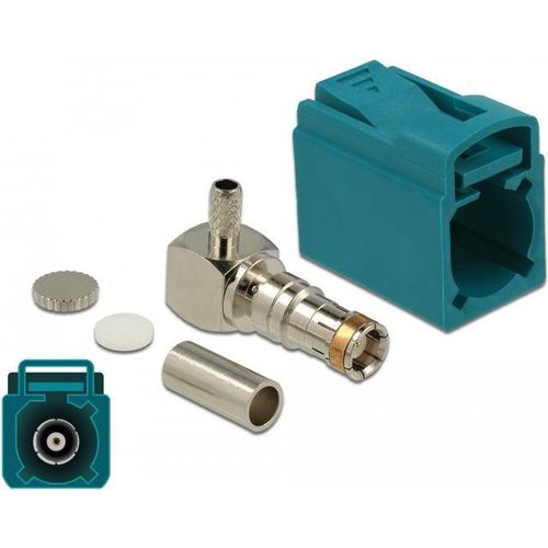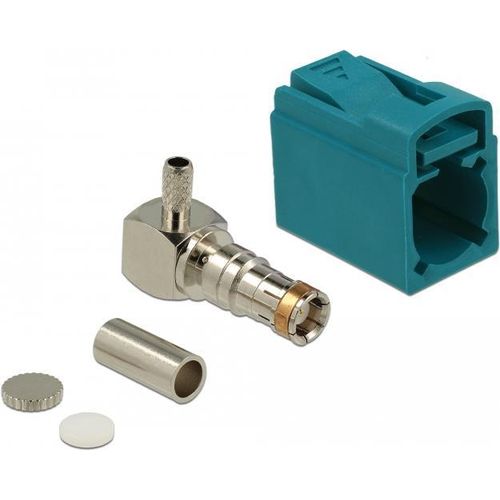 DeLOCK 89723, FAKRA Z, Meessoost, 90°, Kuld, Sinine, Roostevaba teras, Messing, Vask, Nikkel, Plast