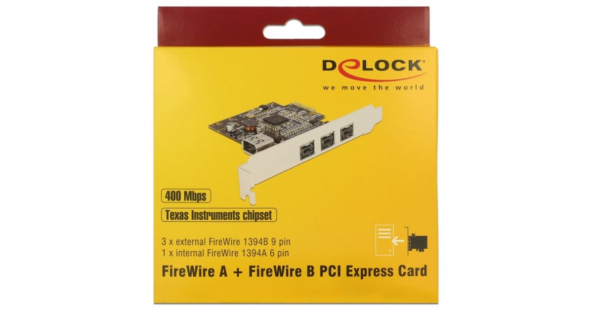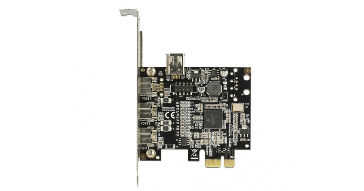 DeLOCK 89864, PCIe, IEEE 1394/Firewire, Must, Hall, Hiina, Texas Instruments, 0,8 Gbit/s