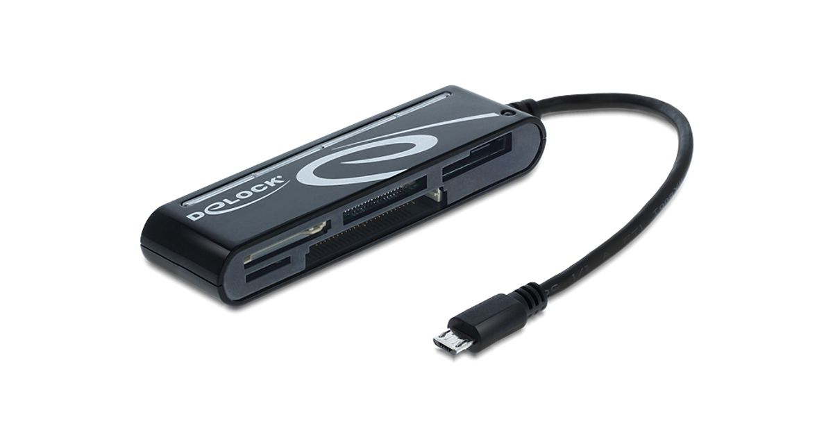 DeLOCK 91732, CF, Mälupulk, MicroSD (TransFlash), MicroSDHC, MicroSDXC, MMC, MS Duo, MS Micro (M2), MS PRO, MS..., Must, USB 2.0, 101,5 mm, 27 mm, 15 mm