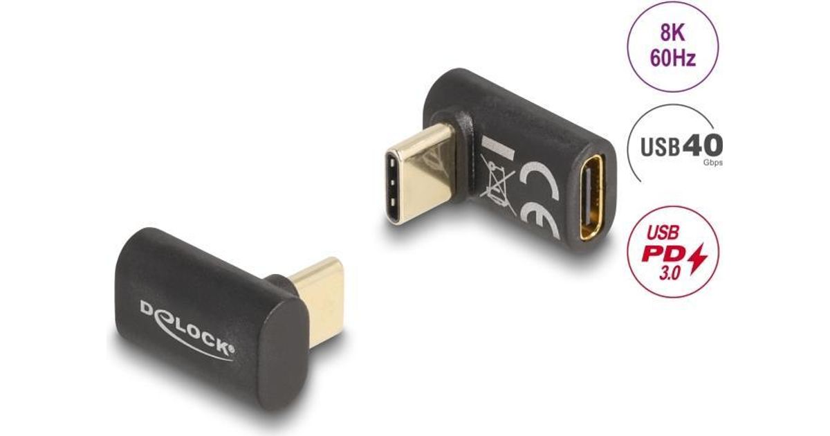 Delock Adapter USB 40 Gbps USB Type-C™ PD 3.0 100 W Stecker zu Buchse gewinkelt 8K 60 Hz (60056)