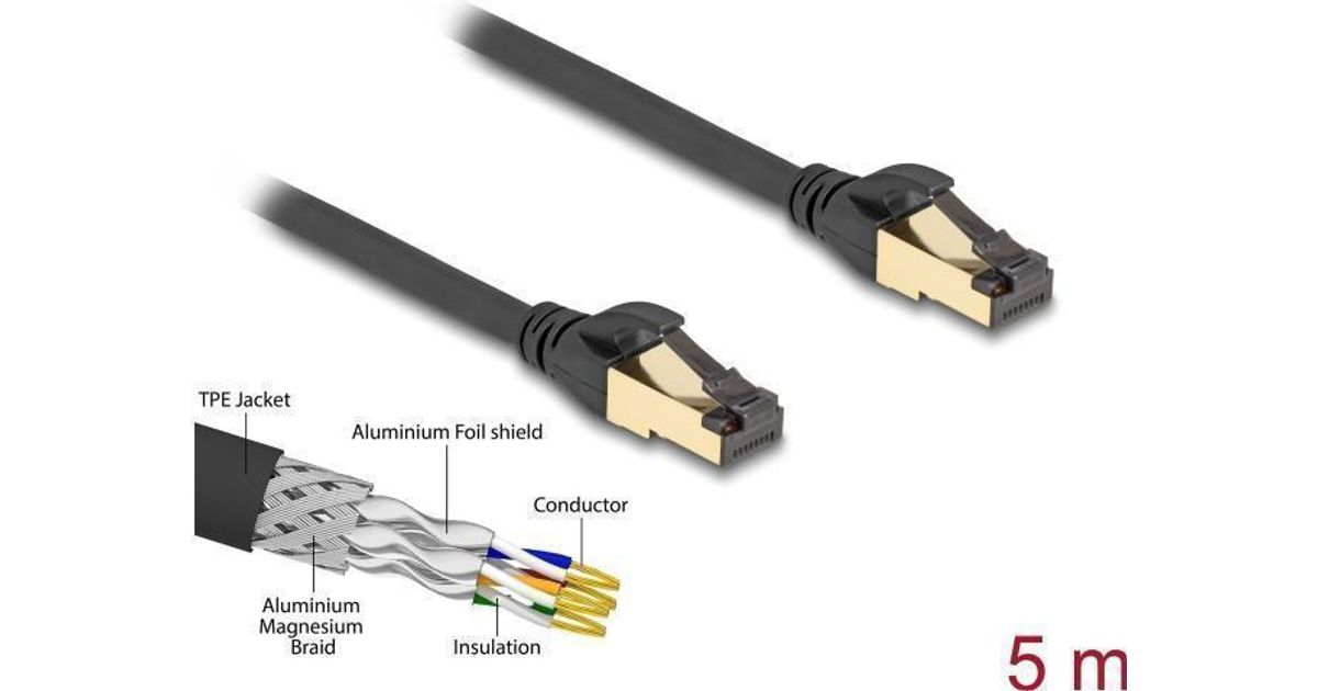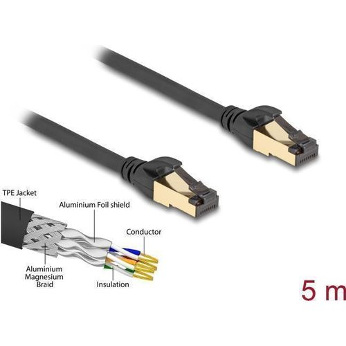 Delock RJ45 Netzwerkkabel Cat.6A Stecker zu Stecker S/FTP schwarz 5 m mit Cat.7 Rohkabel Industrie und Outdoor tauglich (80251)