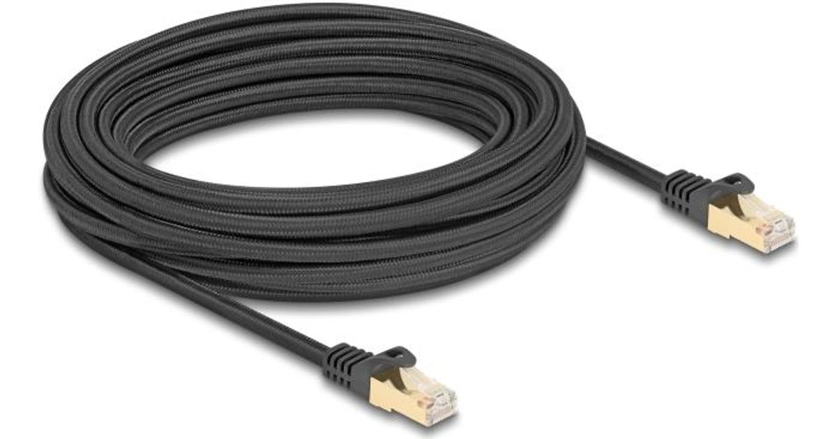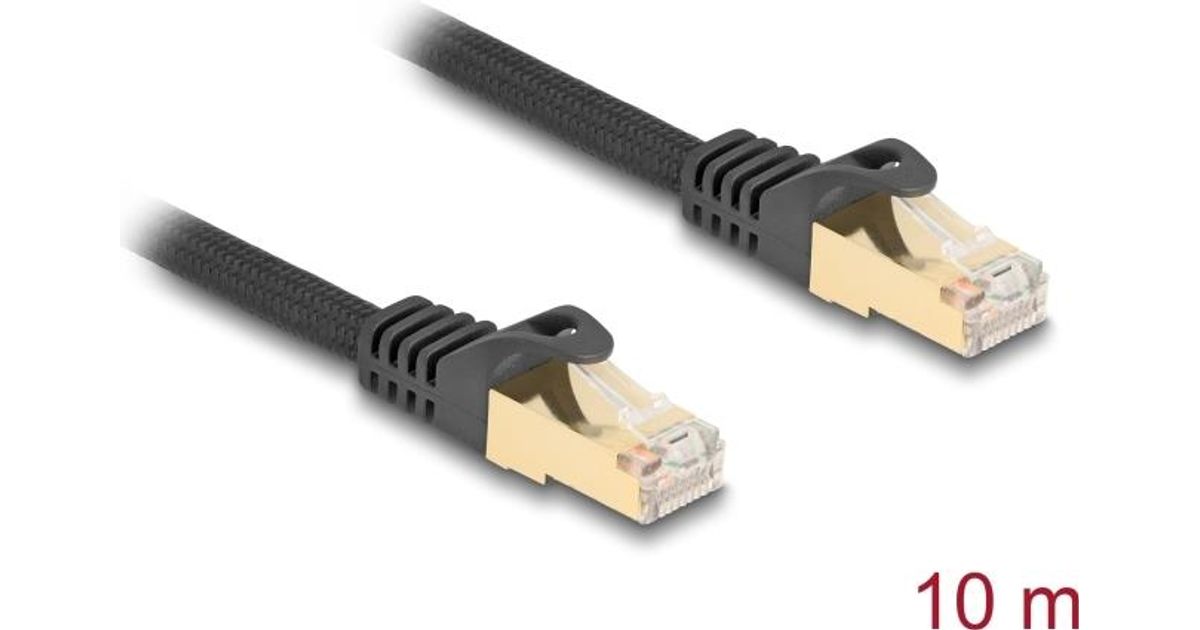 Delock RJ45 Netzwerkkabel mit Geflechtmantel Cat.6A S/FTP Stecker zu Stecker 10 m schwarz (80322)