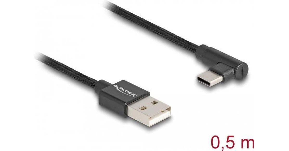 Delock USB 2.0 Kabel Typ-A Stecker zu USB Type-C™ Stecker gewinkelt 0,5 m schwarz (80029)